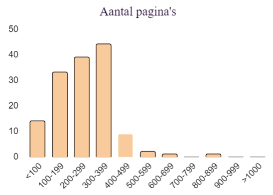 Het totaal aantal pagina’s was 36552, dus het gemiddelde aantal pagina’s per boek was 256