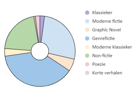 Ik las maar liefst 30 (21%) non-fictieboeken. Ben je benieuwd welke ik daarvan de beste vond? Klik snel hier! Een verdere genrebreakdown: 27% moderne fictie, 5% (moderne) klassiekers en 38% genrefictie (sci-fi, horror, romantiek, thriller, fantasie) en 6% Graphic novel.